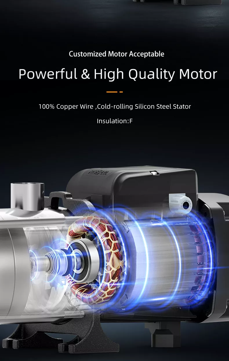 Ponpa anitzeko horizontala fase anitzeko ponpa horizontala da, eraginkortasun handiko, errendimendu zabala, ebakuntza segurua eta egonkorra, zarata baxua, bizitza luzea, instalazio erraza eta mantentzea. Batez ere ur garbia edo beste likido batzuk uraren antzeko propietate fisiko eta kimikoekin garraiatzeko erabiltzen da. Hiri handiko eraikinak eta sua ur-hornidura eta drainatze egokia da, lantegien eta meategien eta meategien ur hornidura eta drainatzeak, distantzia luzeko uraren entrega, ura ekoizpen prozesuan zirkulazioan, HVAC zirkulazioa, etxeko urak eta bestelakoak.