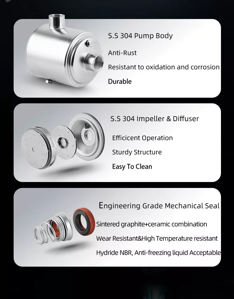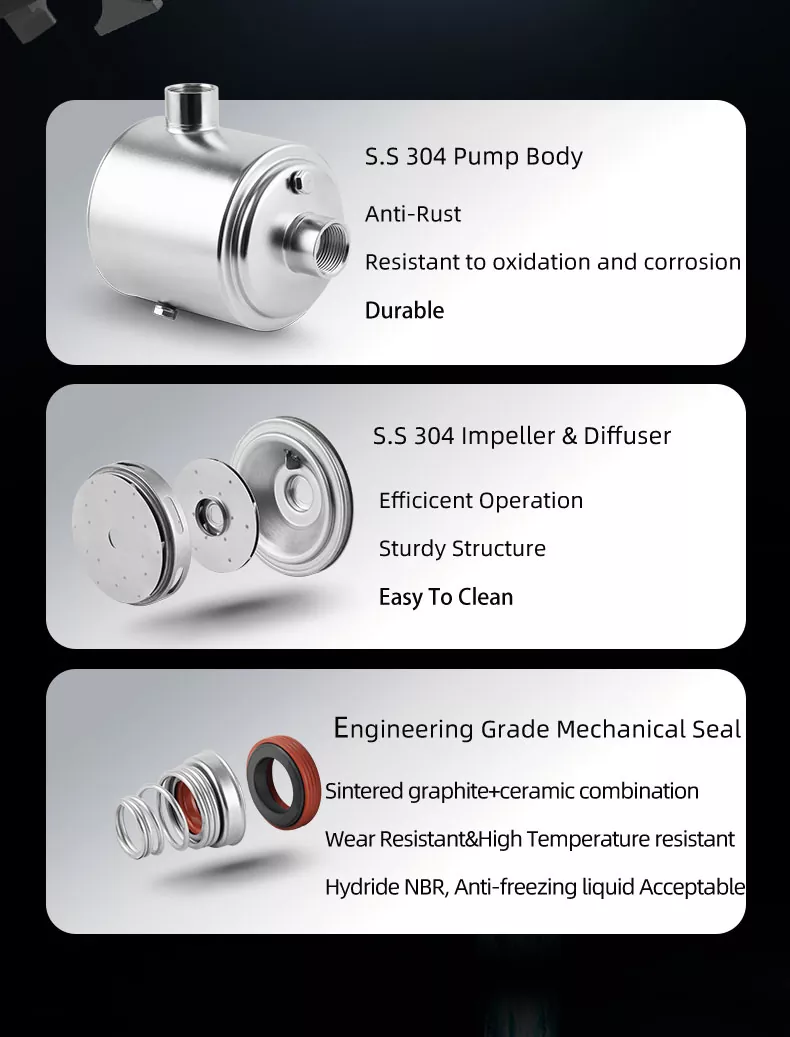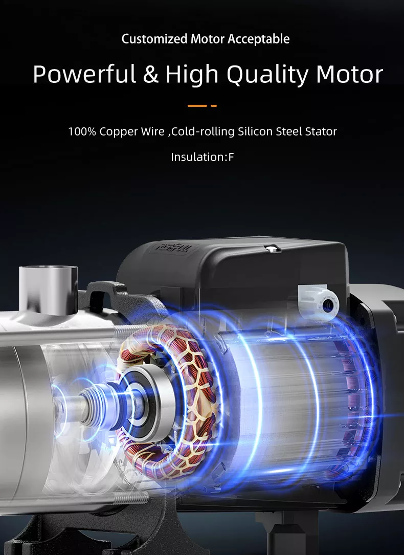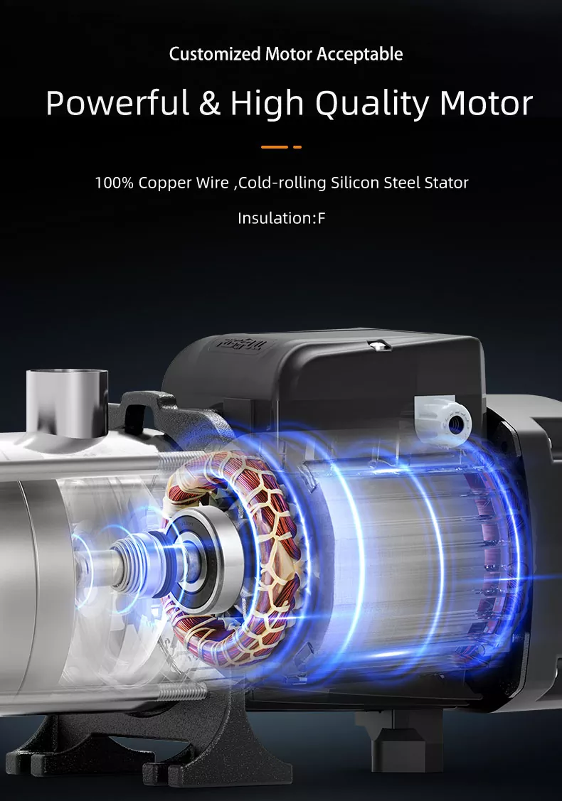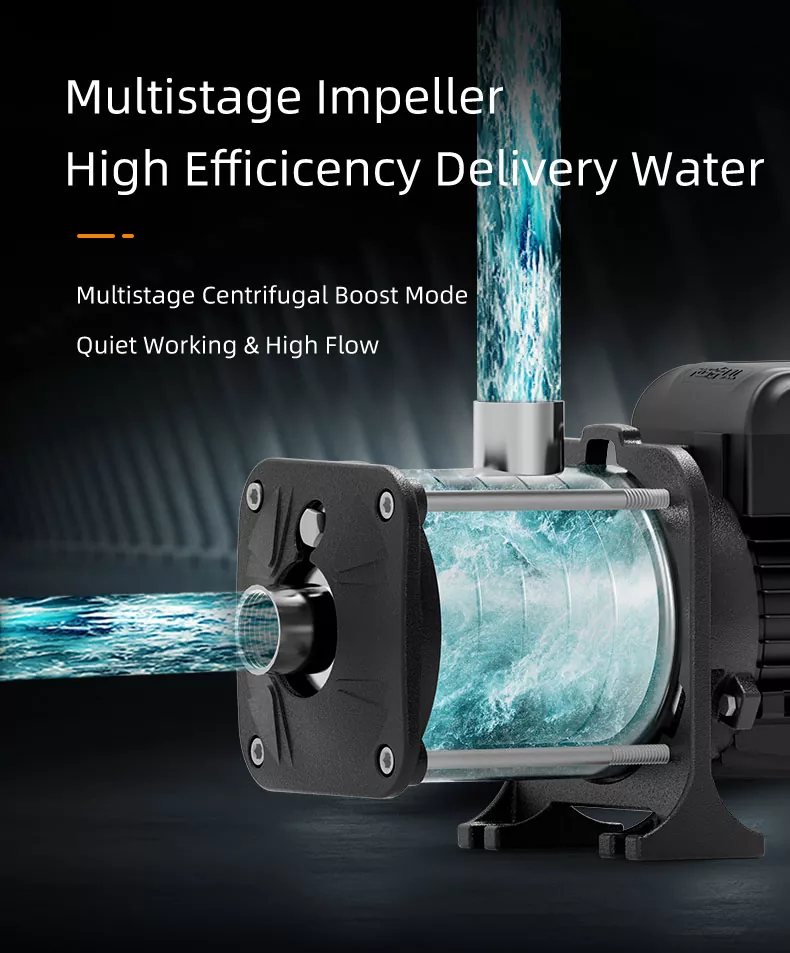 Presioaren irteera orokorrean laguntzen duen etapa bakoitzarekin, behar duzunean ur fluxu egonkor eta indartsuaz gozatu ahal izango duzu. Zure lorategia ureztatzetik hainbat dutxa aldi berean exekutatzera, ponpa honek errendimendu fidagarria eta koherentea eskaintzen du.