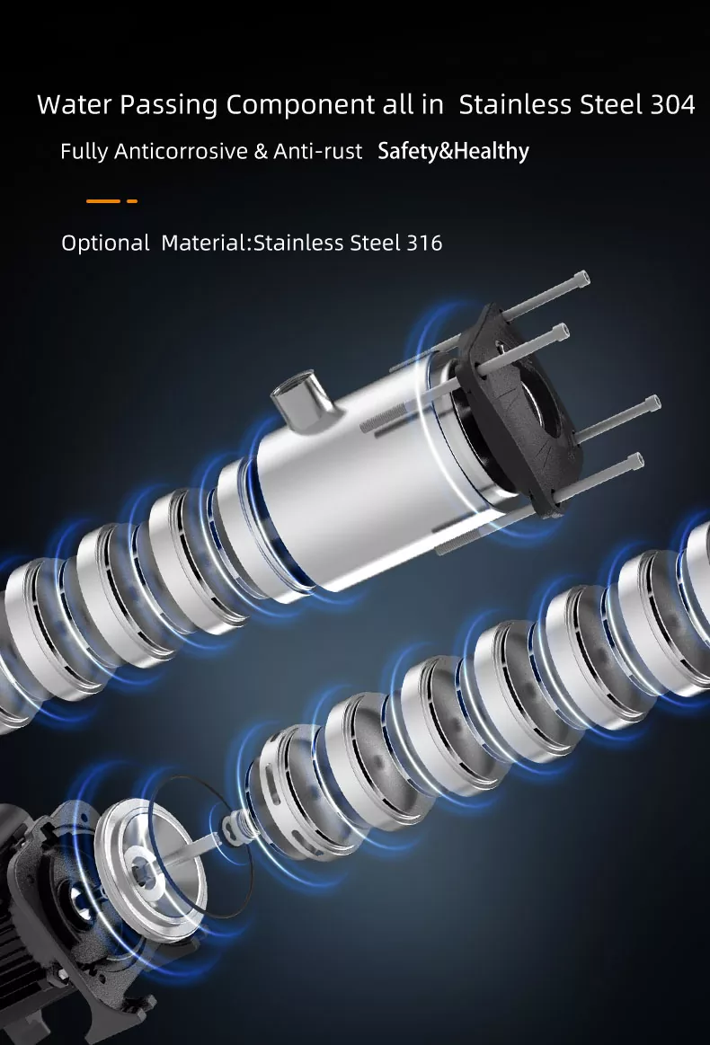 CHM12 / IV Series Smart Inverter Steel Altzairu Herdoilgaitzezko Maila Multistrifugal Ponpa nahiko heldua da gaur egun merkatuan dagoen merkatuan, egitura trinkoa eta lan egonkorra, operazio-zarata txikia duena,% 44-70 arte. Uraren gaineko osagaiak altzairu herdoilgaitzezko AISI304 .It erabiltzen da