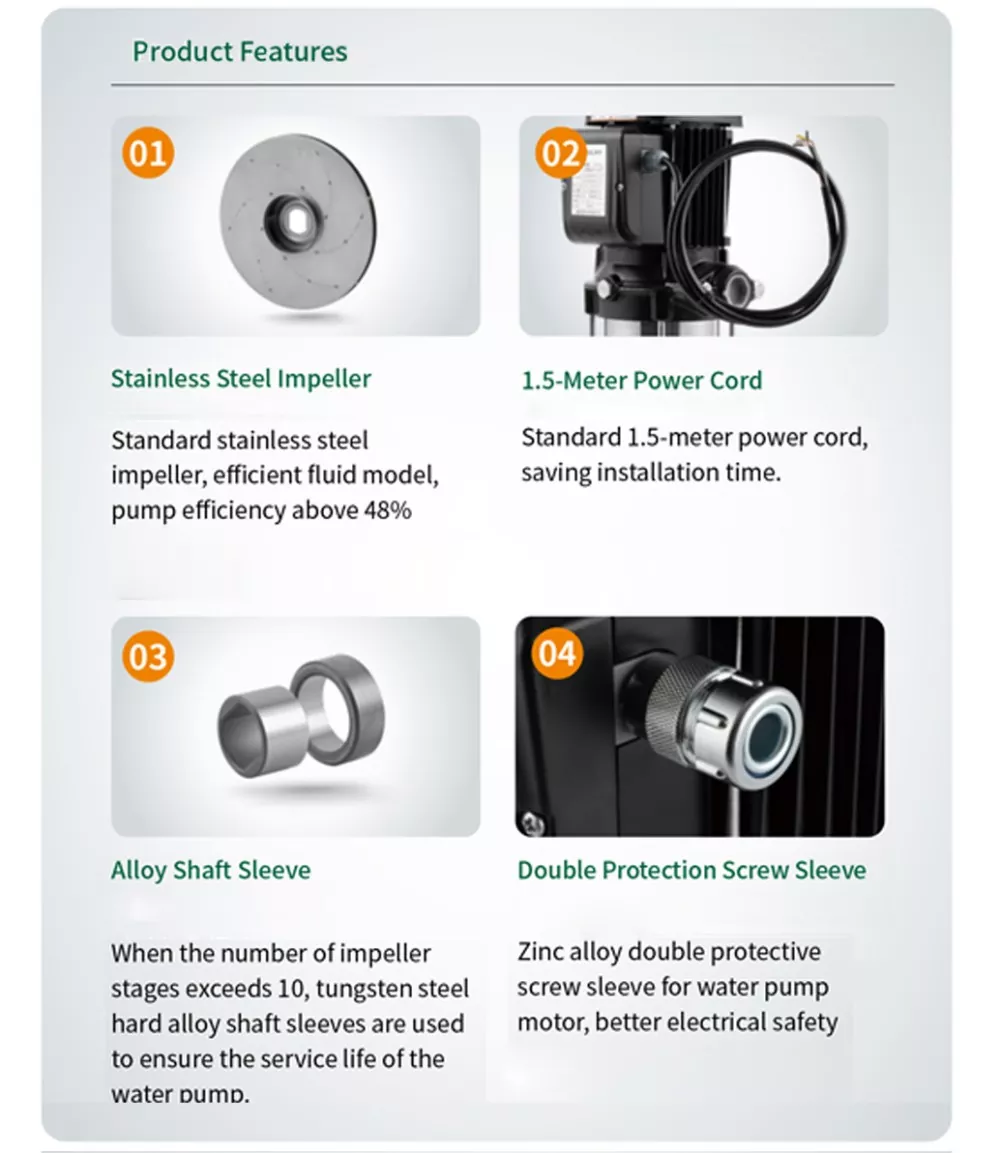 Ponpa honek korrosioarekiko erresistentzia, eraginkortasun handia, energia aurreztea eta egitura trinkoa ditu, ur hornikuntzarako eta industria likidoen garraiorako egokia da.