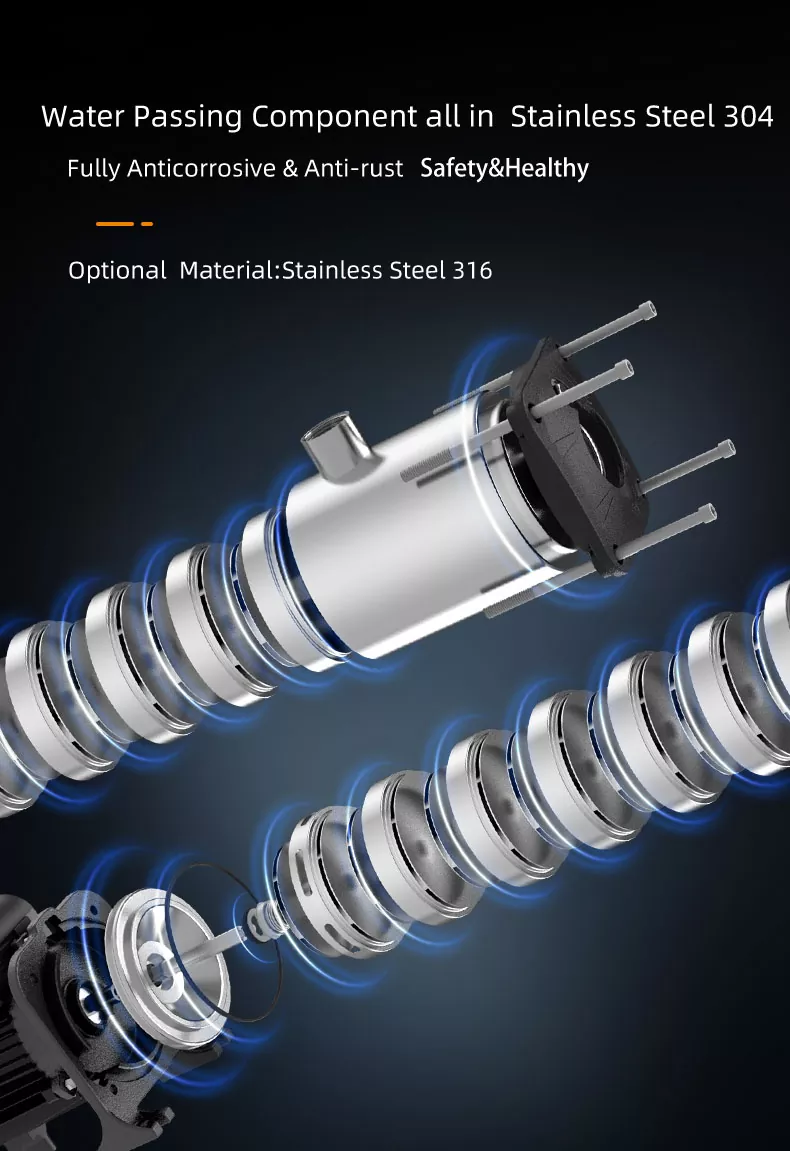 Hozteko eta zirkulazio sistema industrialetara eta presioaren bultzadatik, gure altzairu herdoilgaitzezko ponpa horizontala polifazetikoa da aplikazio sorta zabala kudeatzeko. Etapa anitzeko konfigurazioak presio-gaitasun handiagoak ahalbidetzen ditu, goi mailako eraikinetan eta merkataritza-instalazioetan erabiltzeko aproposa bihurtuz.