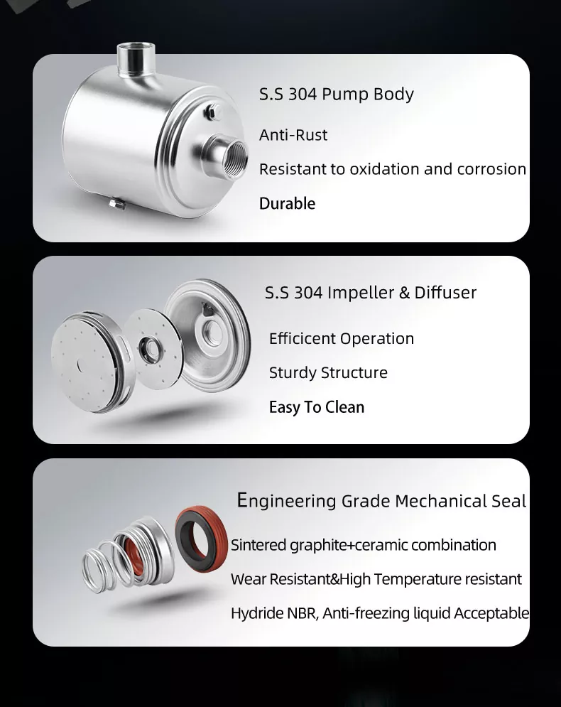 Azkenerako eraikia, ponpa honek korrosioari eusten dion altzairu herdoilgaitze sendo sendoa du eta epe luzeko iraunkortasuna bermatzen du. Ponpa honetan konfiantza dezakezu funtzionatzeko modu egokian eta eraginkorrean, baita ingurune zorrotzenetan ere.